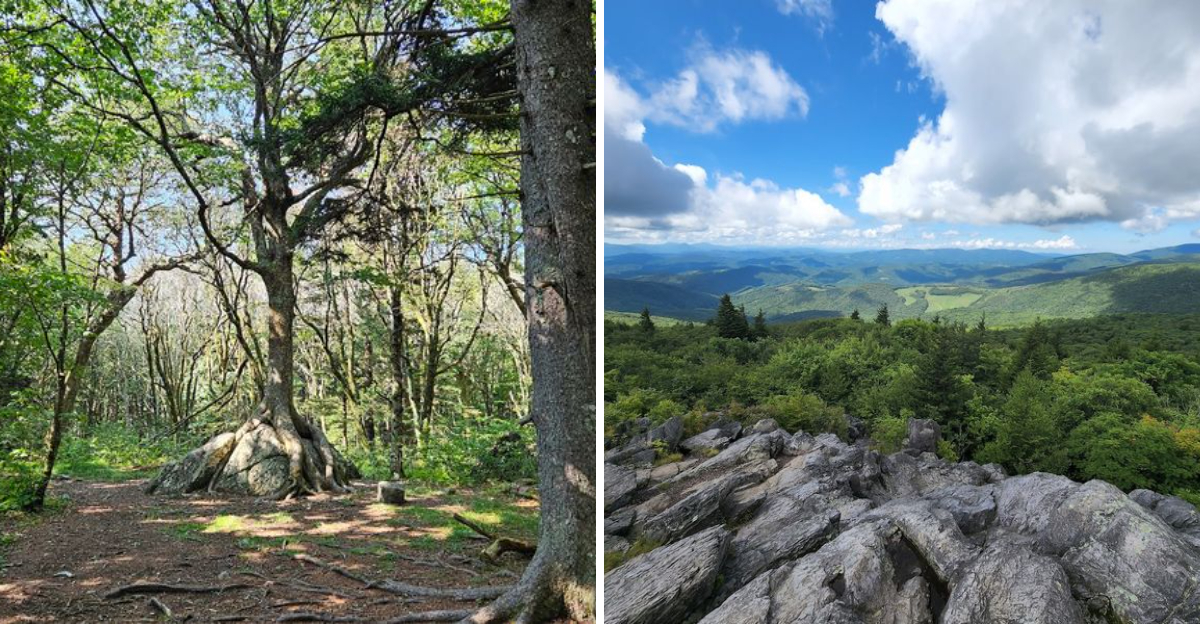 It’s one of those features that makes Grayson Highlands State Park feel like more than just a hiking destination. The trail leading up to Little Pinnacle rewards you with sweeping views across the Virginia highlands, and this tree sits along the way like a friendly, eccentric landmark.