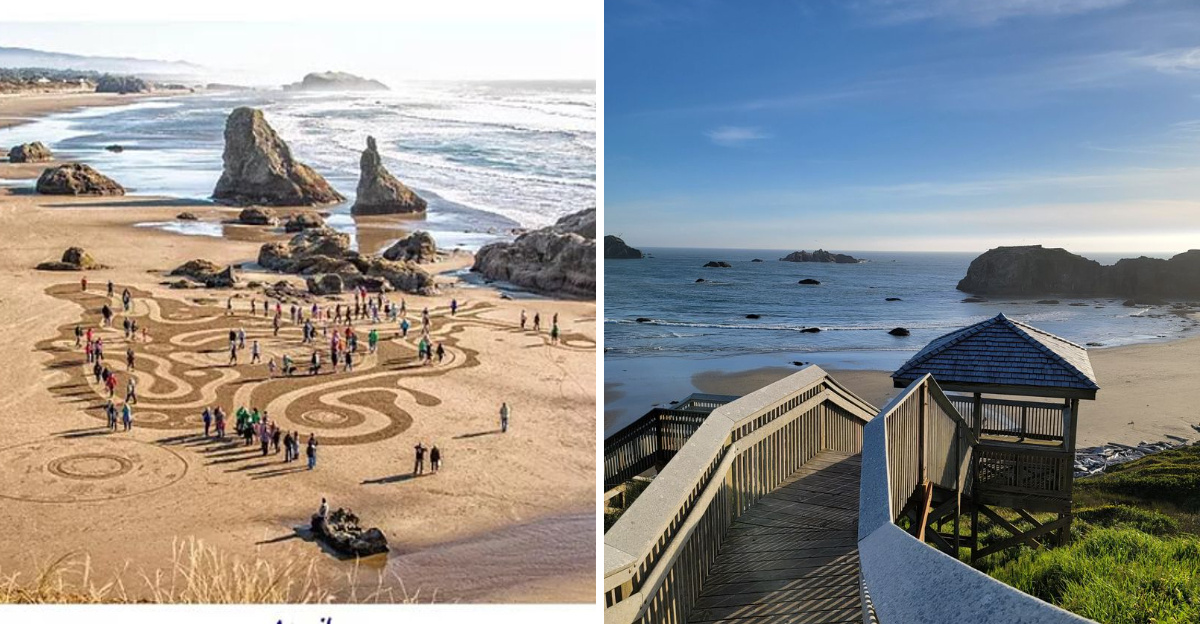 Dedicated volunteers transform the sand into enormous walking labyrinths, intricate designs that exist only for a few hours before the Pacific reclaims them.