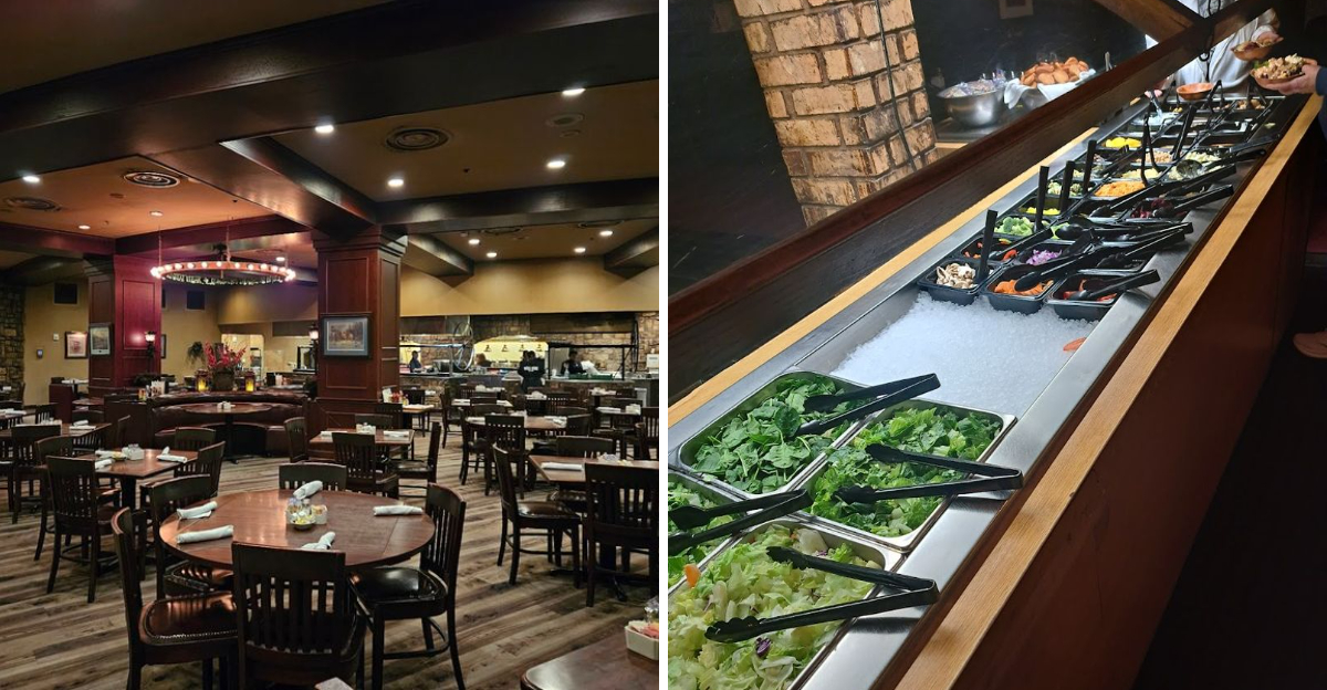 The setup is classic, hearty steaks coming off the grill, paired with a salad bar that feels like it has been perfected over time. Rows of toppings, house-made touches, and enough variety to make you rethink skipping it.