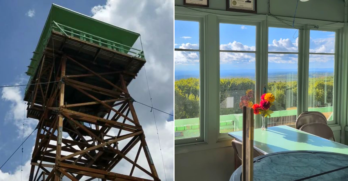 The tower was originally built from local spruce in 1942, then replaced in 1964 with the current 55?foot timber structure. It was scheduled for demolition in 1991, but a group of determined locals formed a foundation, saved it, and turned it into a public rental.