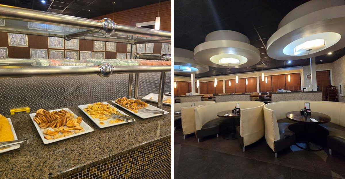 The sheer size of the spread stopped me in my tracks the first time I walked in. Over 100 items, fresh sushi, all-you-can-eat crab legs on Fridays, prime rib, seafood boil, and desserts that actually taste good.