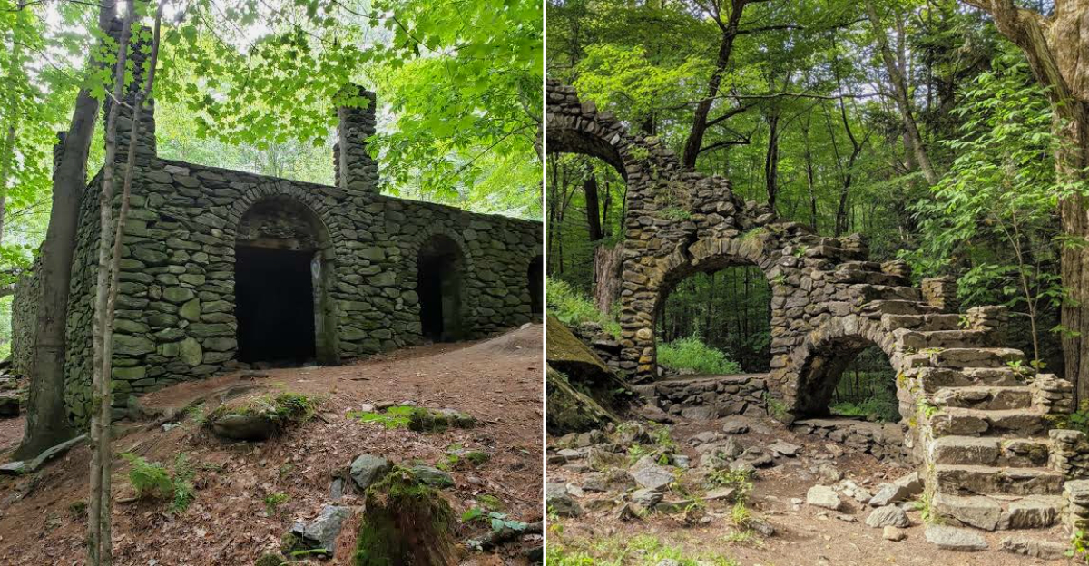 Madame Sherri’s Castle Ruins, Gulf Road Trailhead Area, West Chesterfield, NH 03443, sits right there, close enough to feel like you stumbled onto a set between takes, and the crew is coming back any minute.