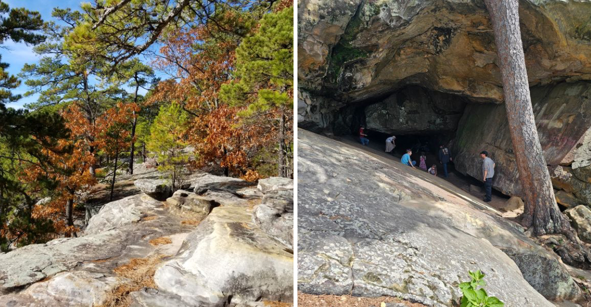 The landscape shifts from dense hardwood forests to dramatic boulder fields, creating scenery that feels more like the Ozarks than the plains many associate with Oklahoma. Once a hideout for notorious outlaws including Jesse James and Belle Starr, the canyon system now offers a quiet escape for hikers, climbers, and anyone seeking solitude among the trees.