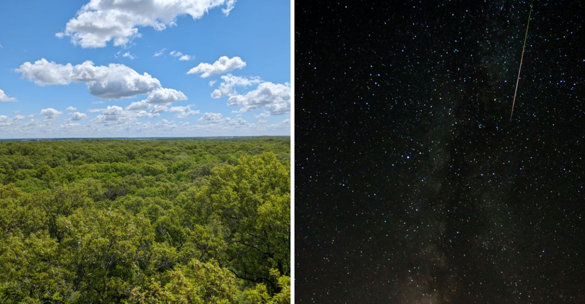 Rising high above the forest canopy, the historic fire tower at Tippecanoe River State Park offers stargazers an unbeatable vantage point. This vintage structure, originally built to spot forest fires, now serves as one of the best observation platforms for astronomy in the region.