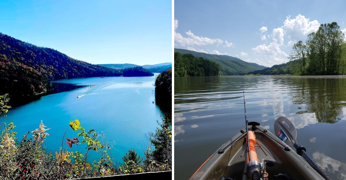 Lake Moomaw sits in one of Virginia’s most pristine natural settings, and the water reflects every bit of that purity. Paddling a kayak across the surface feels almost meditative, with the forested ridgelines mirrored perfectly below you.