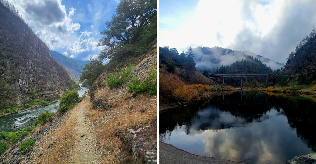 Walking into the gold miner’s tunnel on this trail is one of those moments that genuinely gives you chills. The tunnel was hand-carved by miners during the late 1800s gold rush era.