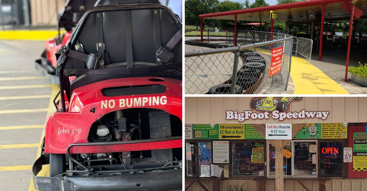 Bigfoot Speedway delivers racing thrills that transform even the calmest visitors into speed-obsessed competitors. The hourglass-shaped track design keeps racers constantly engaged, with turns appearing just when you think you’ve built up enough momentum to overtake someone.