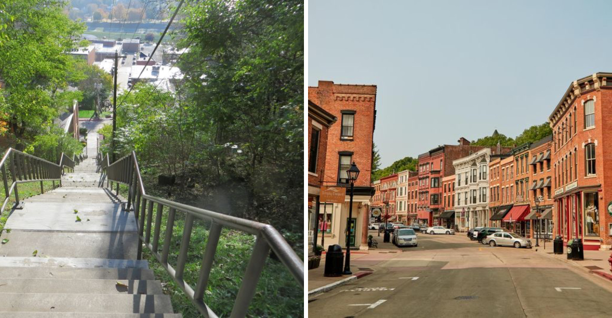 Galena, Illinois, hides quiet drama in small moves like this. The staircase proves that vertical moments make towns memorable. At the top, the breeze closes the scene like a curtain.