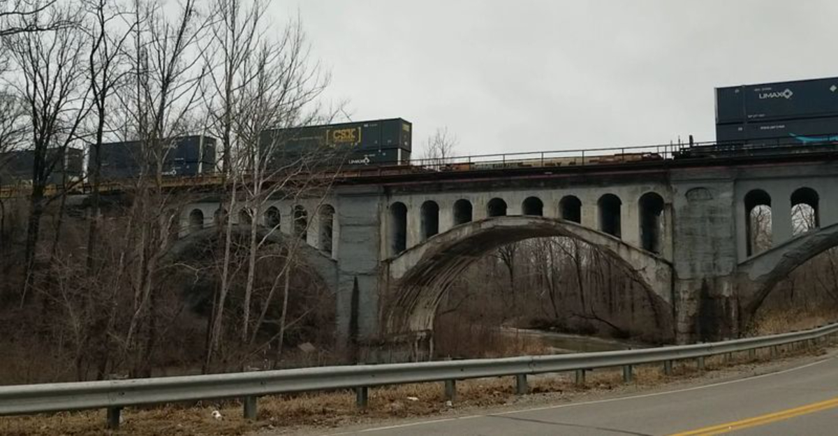 Unlike many abandoned structures that earn haunted reputations, the Avon Bridge still serves its original purpose. Freight trains regularly rumble across the tracks on top, and when they do, the entire structure vibrates.