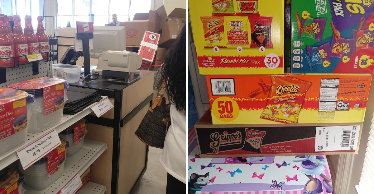 You might show up one week and find discounted bags of specialty chips you have never seen at a regular grocery store. The next visit could turn up clearance baking supplies, bulk candy, or pantry items that were simply overstocked.