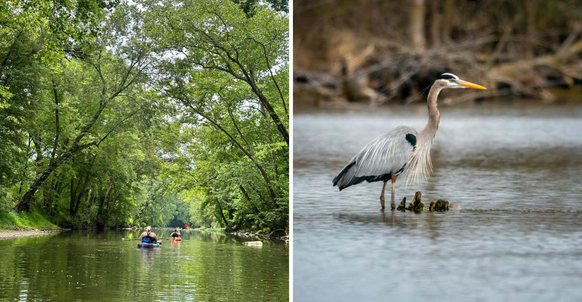 The river supports healthy fish populations including bass, bluegill, and catfish that attract anglers and provide food for the birds and mammals living nearby. This abundance of life at all levels creates an ecosystem where something interesting always seems to be happening if you stay quiet and observant while drifting downstream.
