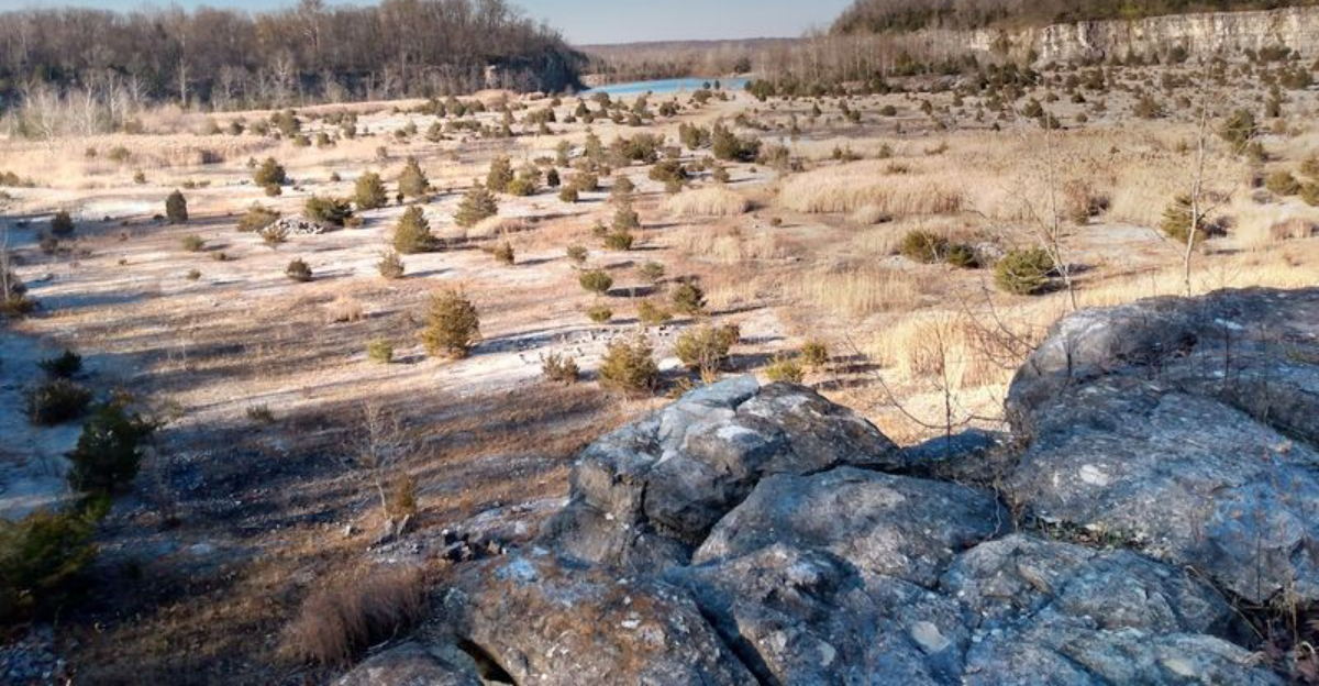 What was once an active limestone quarry operating from 1917 to 1977 has been reborn as a 520-acre public park that feels like a secret the rest of the country has not discovered yet. Walking along its trails, you find yourself moving between rugged cliff edges, quiet wooded paths, and open meadows, each turn offering a new perspective of the park’s unique landscape.