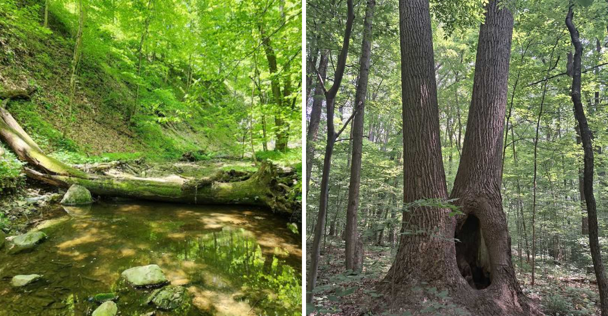 Sections of this forest have never been logged, which means what you see walking the Tall Timbers Trail is genuinely old-growth woodland, something increasingly rare across the Midwest.