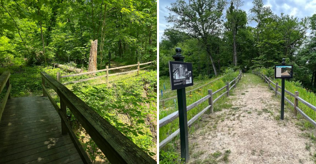 The slight embankments, the steady grades, the way the path curves through the ravine, all of it was shaped by engineering decisions made more than 130 years ago.