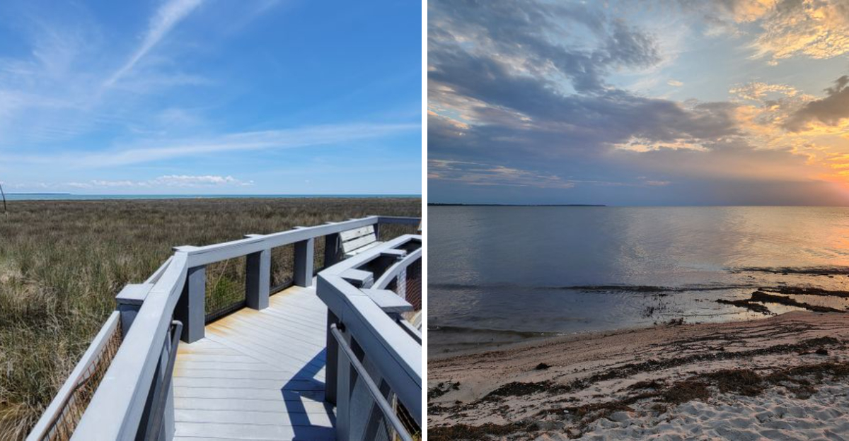Unlike ocean beaches with pounding surf, the bay’s gentle waters create a calmer, more meditative atmosphere. High tide significantly changes the beach experience.