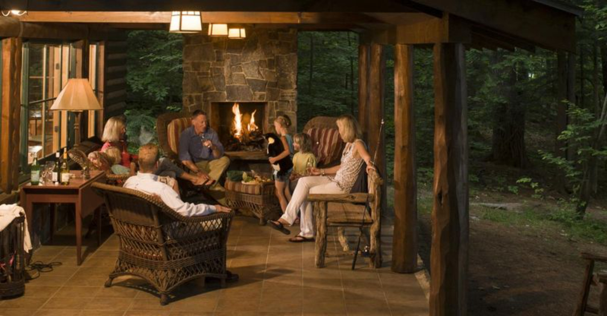 Your private cabin becomes a cozy sanctuary where pine-scented breezes drift through screened porches. Each cottage features a beautiful fieldstone fireplace that crackles warmly on cool Maine evenings.