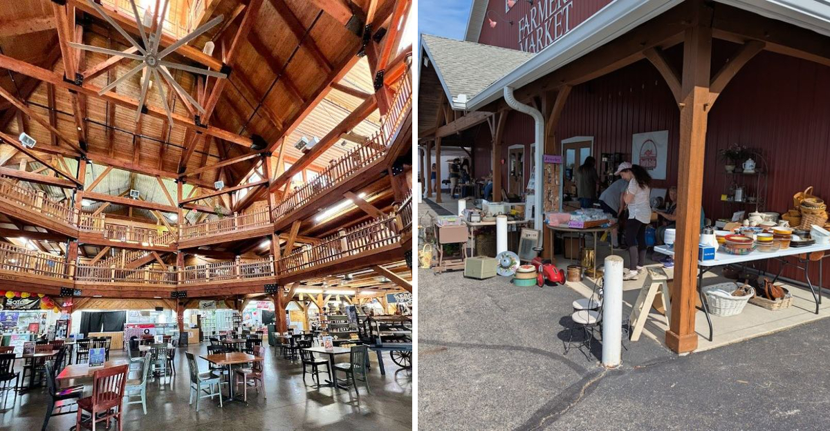 Built in 2006 by Amish craftsmen using traditional peg-and-beam construction, this 51,000-square-foot space is one of the largest of its kind in the entire country. What really gets me is that most people have no idea what is waiting inside those three floors of handcrafted space.