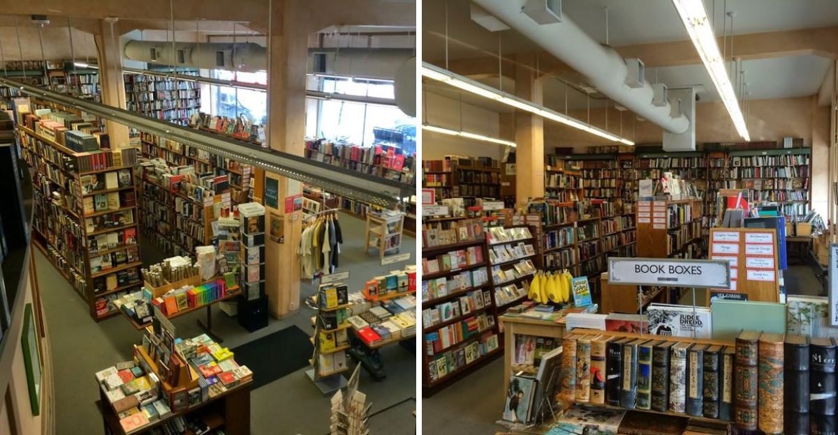 A massive Minnesota bookstore opens up like a paper labyrinth, packed wall to wall with stories waiting to be picked up and taken home. Thousands of titles stretch across shelves that seem to go on longer than you expect, each aisle pulling you a little deeper in.