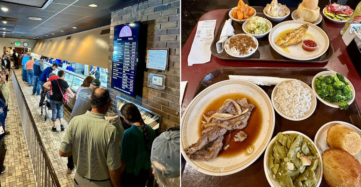 You round the corner, and there it is, the cafeteria line everyone in Birmingham tells you about with a half smile like a secret. Stainless pans shimmer under bright lights, and a wave of savory steam rolls out the second the doors swing.