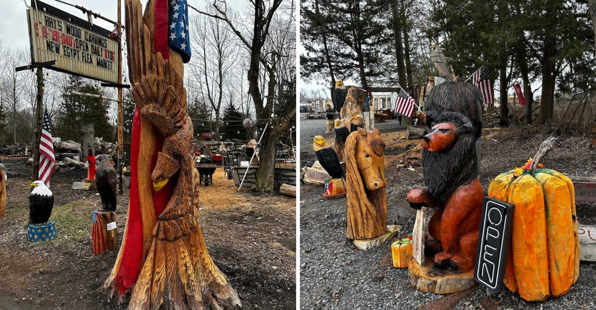 Driving past Larry’s for the first time is a genuine sensory event. The roadside display stretches along the property with an impressive variety of sculptures, all carved from wood and arranged in a way that practically demands you pull over.