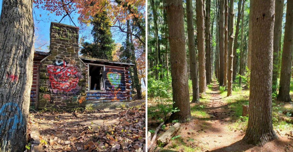 Around the 2.0-mile mark on the Blue Trail, something shifts. The trees thin just slightly, and then you see it: the haunting remnants of what was once a lived-in home sitting quietly at the edge of the woods.