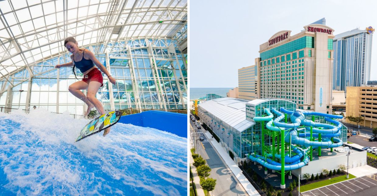 Forget that Atlantic City is known for boardwalks and slot machines, because this 120,000 square foot indoor waterpark is serving tropical summer 365 days a year .