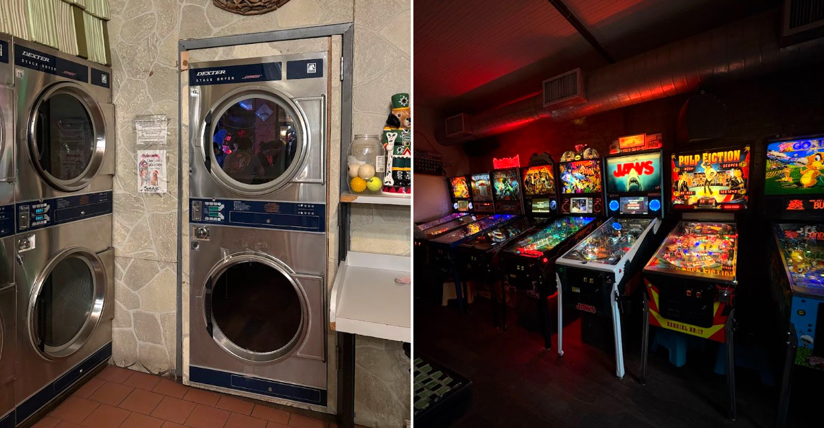 What if your laundry day came with bonus high scores and a tiny rush of competition? This New York laundromat has a pinball arcade to keep you busy while you wait, so the usual sit-and-stare routine turns into a little game break that makes the time move faster.