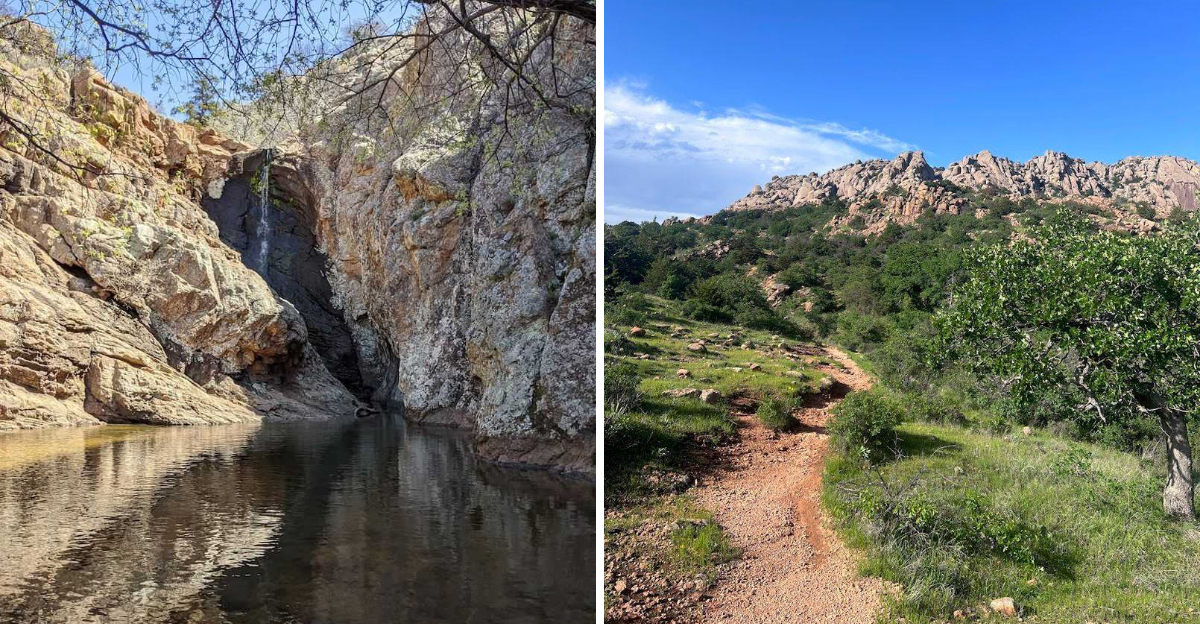 If you have ever wanted a hike that actually delivers on every promise, this trail in Oklahoma is the one to put on your list. This roughly three-mile loop winds past creek crossings, rocky cascades, and finally rewards you with a stunning waterfall framed by ancient granite boulders.