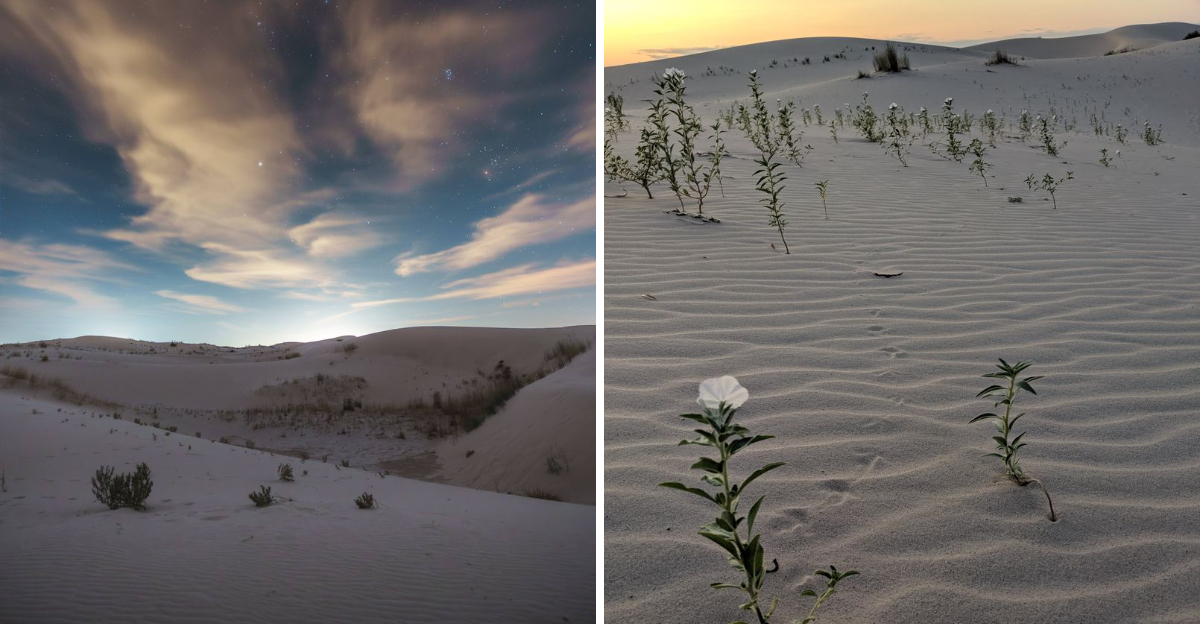 The West Texas highway gives no warning for what comes next, which is why the sight of towering white sand dunes near Monahans feels so unexpected. Rising straight out of the scrubland, they immediately signal that this stop is something out of the ordinary.