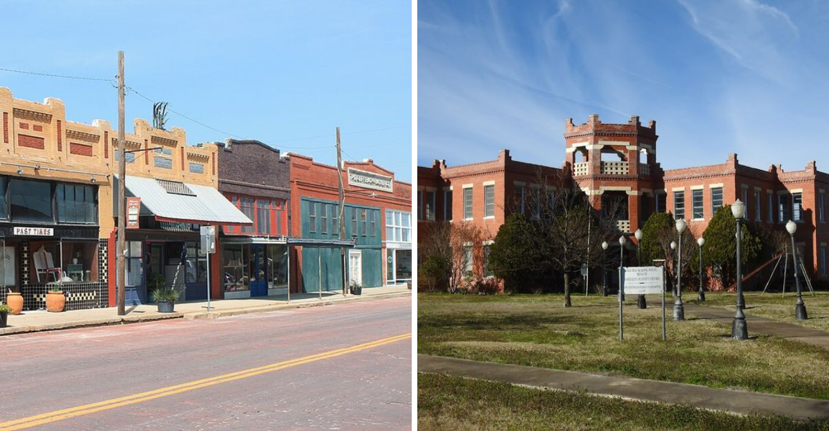 Listed on the National Register of Historic Places, the district preserves a tight collection of early 20th-century commercial row buildings that once hummed with the business of a booming cotton economy.