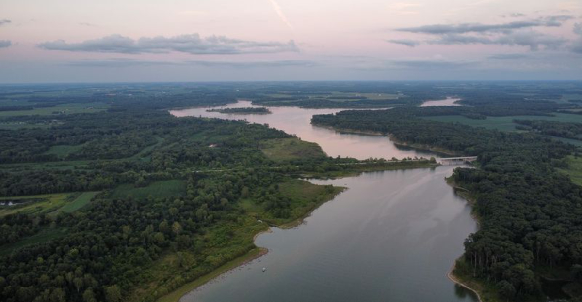 The sight of stone arches emerging from a modern reservoir connects the present to a past that most Indiana residents never think about.