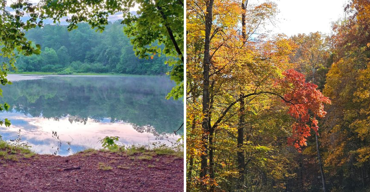 No crowds, no paved paths, just rugged trees and quiet that presses into your ears. It is the kind of place where you realize why people used to disappear into the woods on purpose.