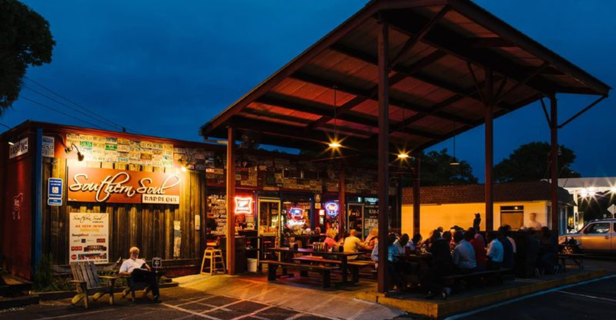 Picture this: a vintage gas station from the 1950s, transformed into one of Georgia’s most beloved barbecue joints. That’s Southern Soul Barbeque in a nutshell. The building itself tells a story, with its retro appeal and quirky roadside vibe that instantly transports you back in time. Located on St. Simons Island, this spot isn’t your typical restaurant. The charm comes from its authenticity – real wood smoke, real island atmosphere, and real community spirit. Southern Living magazine and food critics across the state have praised it as one of Georgia’s top barbecue destinations. Walking up to the entrance, you’ll notice the casual, welcoming energy. It’s the kind of place where tourists and locals mingle over plates of smoked meat, swapping stories and recommendations. The setting alone makes it worth the visit, but the food? That’s where the magic really happens.
