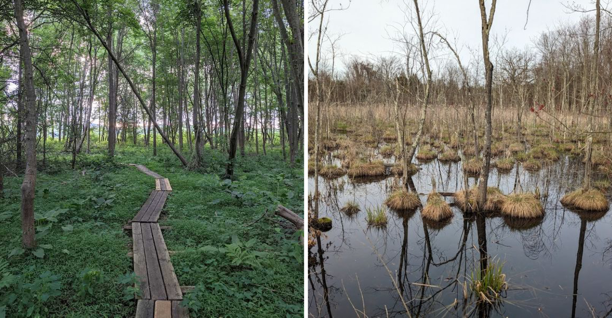 The trails here wind through wetlands and meadows, offering hikers a front-row seat to nature’s quiet show.