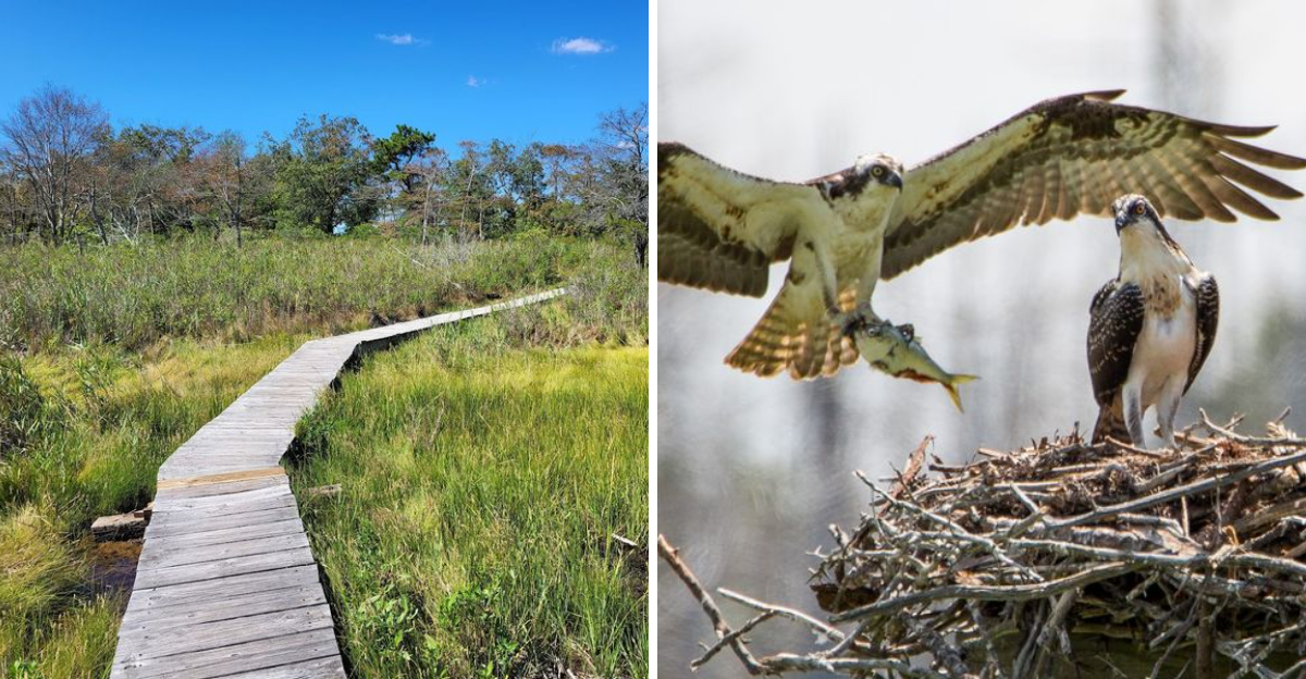 Walking out onto the wetlands boardwalk at Cattus Island feels like stepping into a nature documentary. The planks creak softly underfoot, and the marsh opens up around you in every direction.