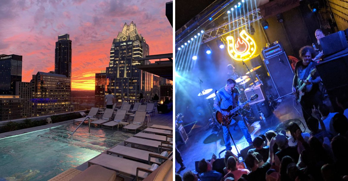 At the top, panoramic views stretch across the city lights below and the dark expanse of the Hill Country beyond, creating a perfect balance between urban energy and natural serenity.