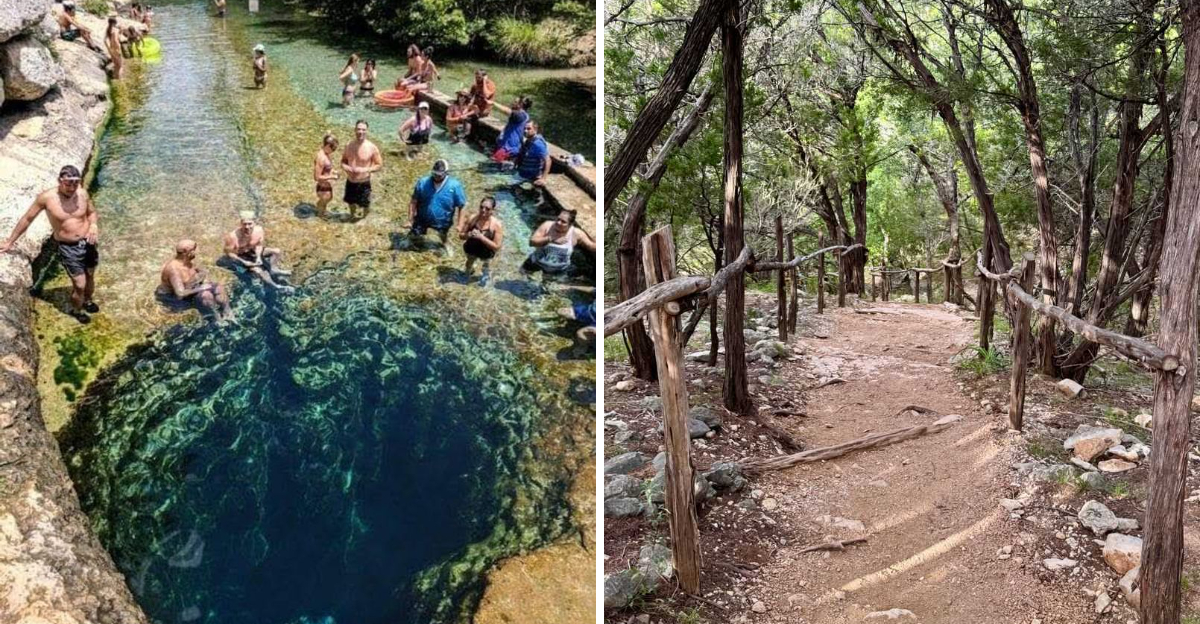 Tucked away in the Texas Hill Country near Wimberley, Jacob’s Well Natural Area sits at 1699 Mt Sharp Rd, a place where crystal-clear artesian spring water once bubbled up from a mysterious underwater cave system that plunges 138 feet deep.