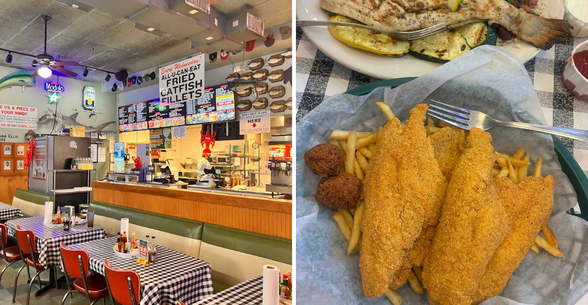 Inside, it is loud, a little chaotic, and exactly how a spot like this should feel. Plates come out fast, piled high, and that first bite of crispy catfish makes it clear why people keep showing up.