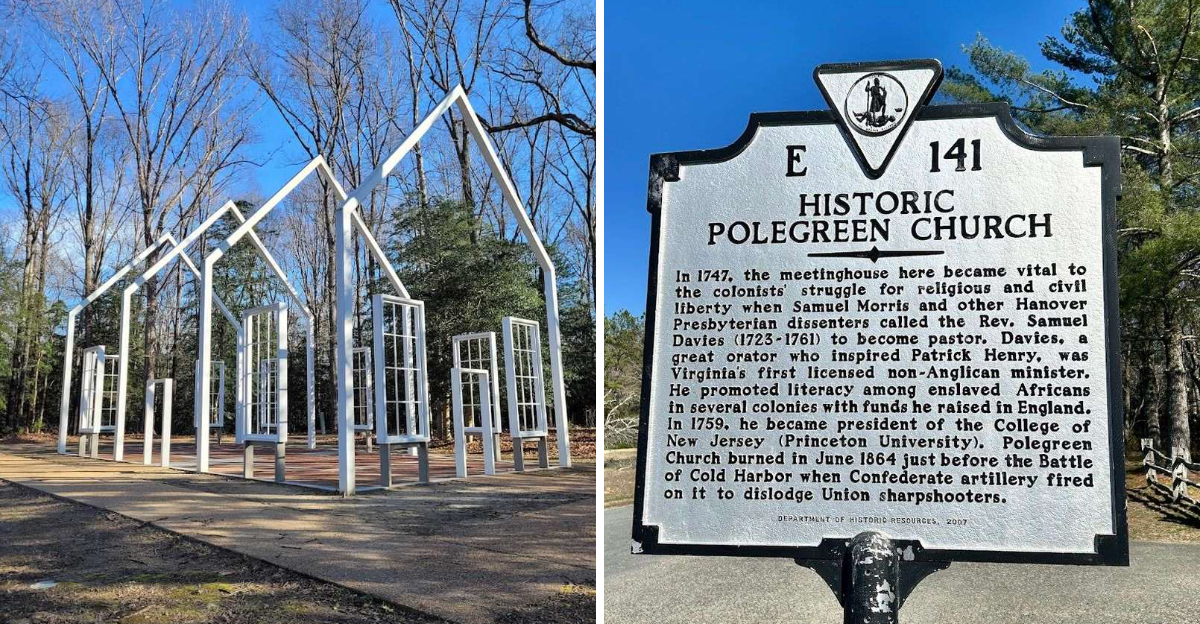 Long before the steel frame existed, this land held a wooden church that played an outsized role in American religious history. Established in the mid-1700s, the Hanover Meeting House, as it was also known, became one of the very first non-Anglican churches to take root in Virginia.