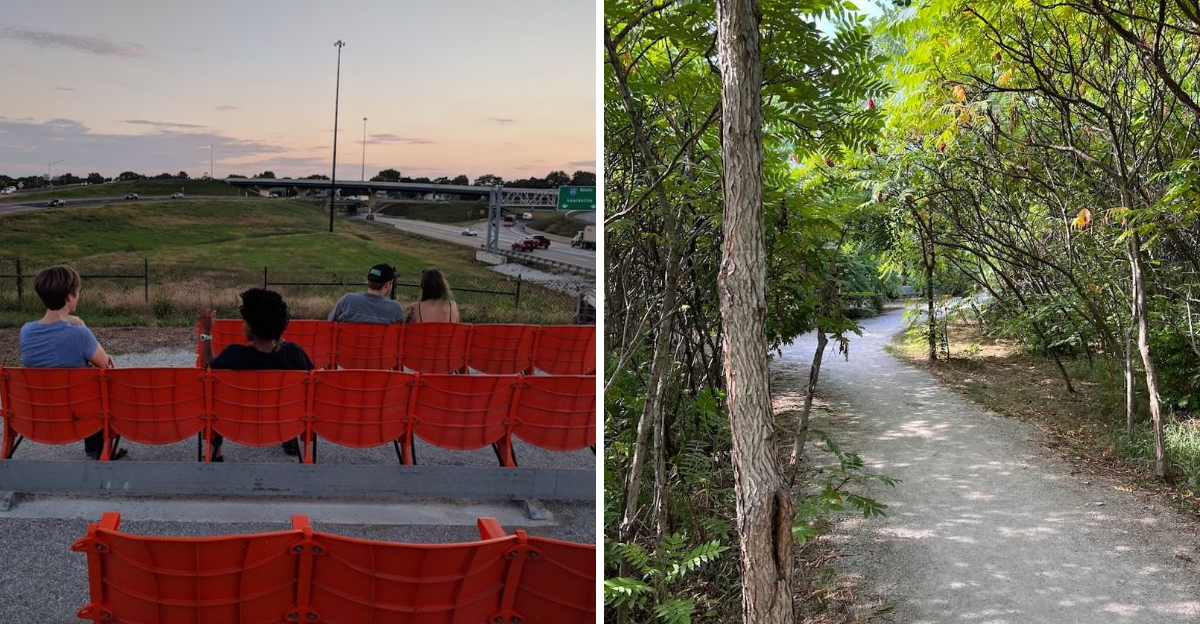 Even without the highway view, the trail section of Idle Park would be a pleasant little urban green space. With it, the whole experience becomes something much more layered.