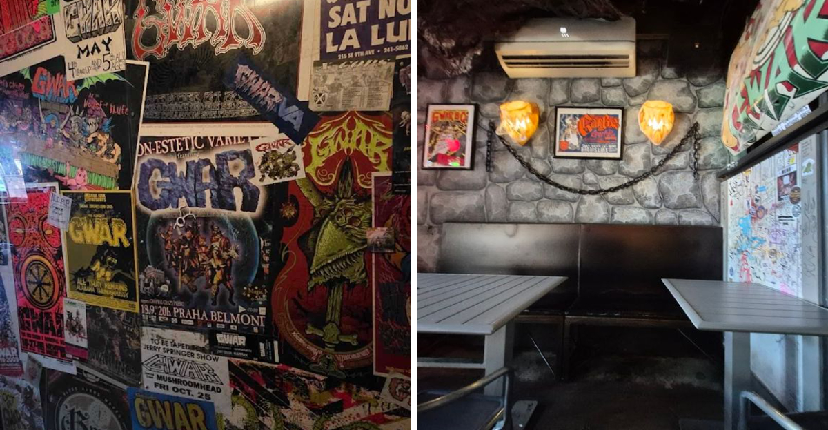 GWAR has been performing theatrical, costume-heavy, deliberately outrageous heavy metal since the mid-1980s, and the band accumulated an extraordinary collection of visual artifacts along the way. GWARbar serves as a repository for many of those pieces, turning the bar into something closer to an unofficial museum of intergalactic metal history.