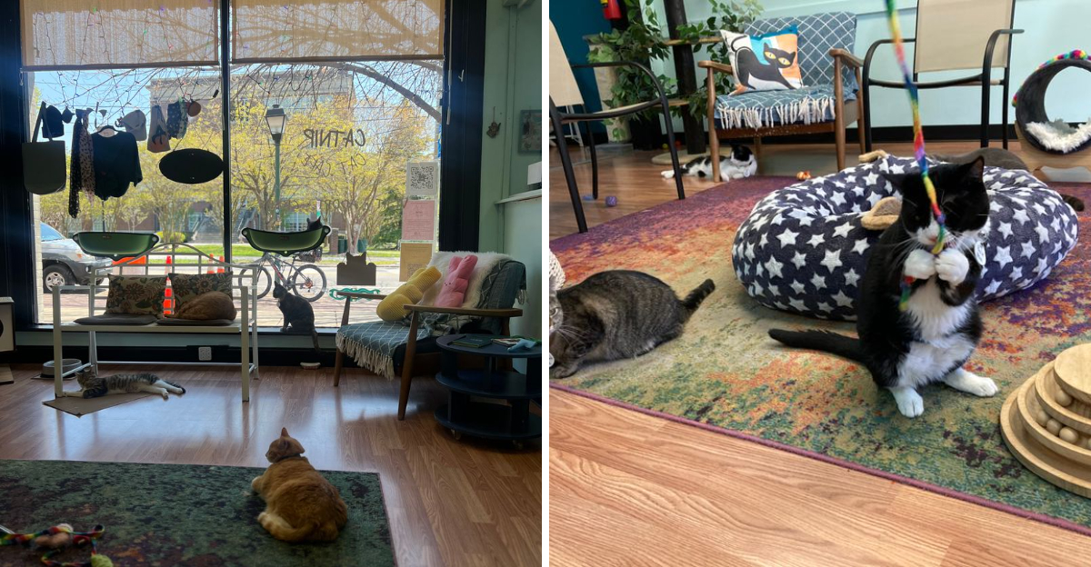 Picture this: dozens of rescue cats lounging on plush window perches, batting at toys dangling from ceiling fixtures, and curling up on cozy couches like they own the place. At Catnip Cat Cafe, located at 1611 Colley Ave in Norfolk, Virginia, every feline resident truly does reign supreme.