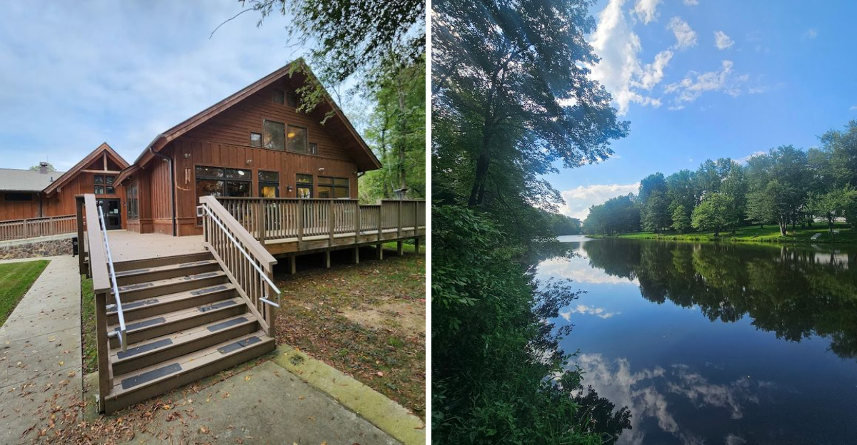 Fishing from the shoreline or the small dock is a relaxed, unhurried experience that pairs perfectly with the park’s overall atmosphere. There is no rush, no crowds fighting for prime spots, and no noise beyond the occasional splash of a fish breaking the surface.