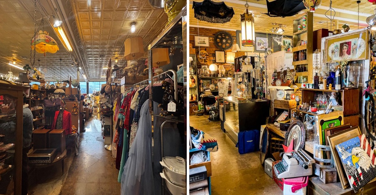 Every corner is packed, vintage pieces stacked beside strange little curiosities, racks of retro clothes brushing up against shelves filled with things you did not even know you wanted.