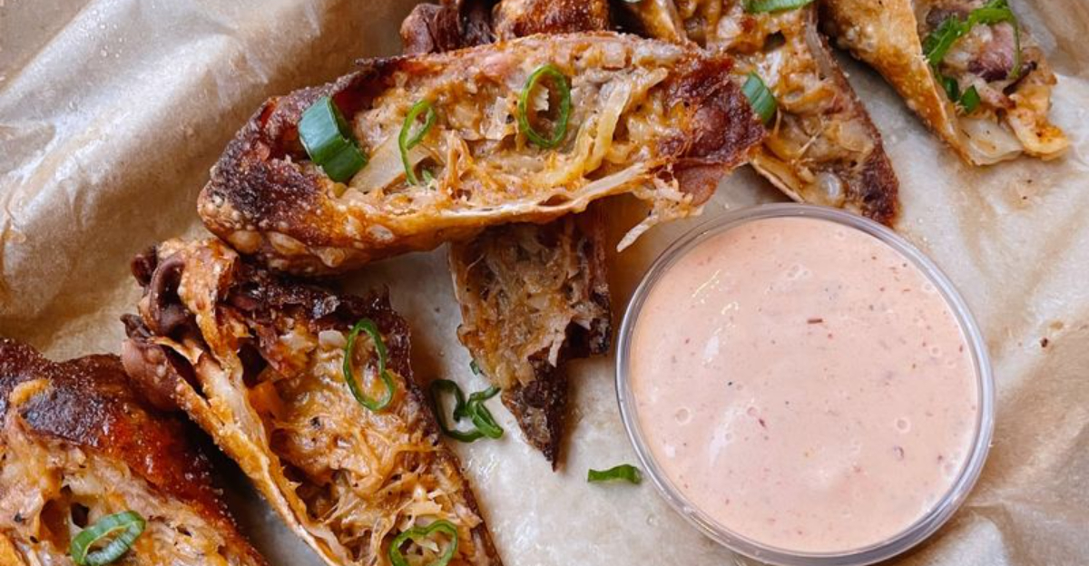 Sometimes the best ideas come from unexpected combinations. Someone at Mac’s had the brilliant notion to stuff eggroll wrappers with pulled pork, mac and cheese, and slaw, creating an instant classic.