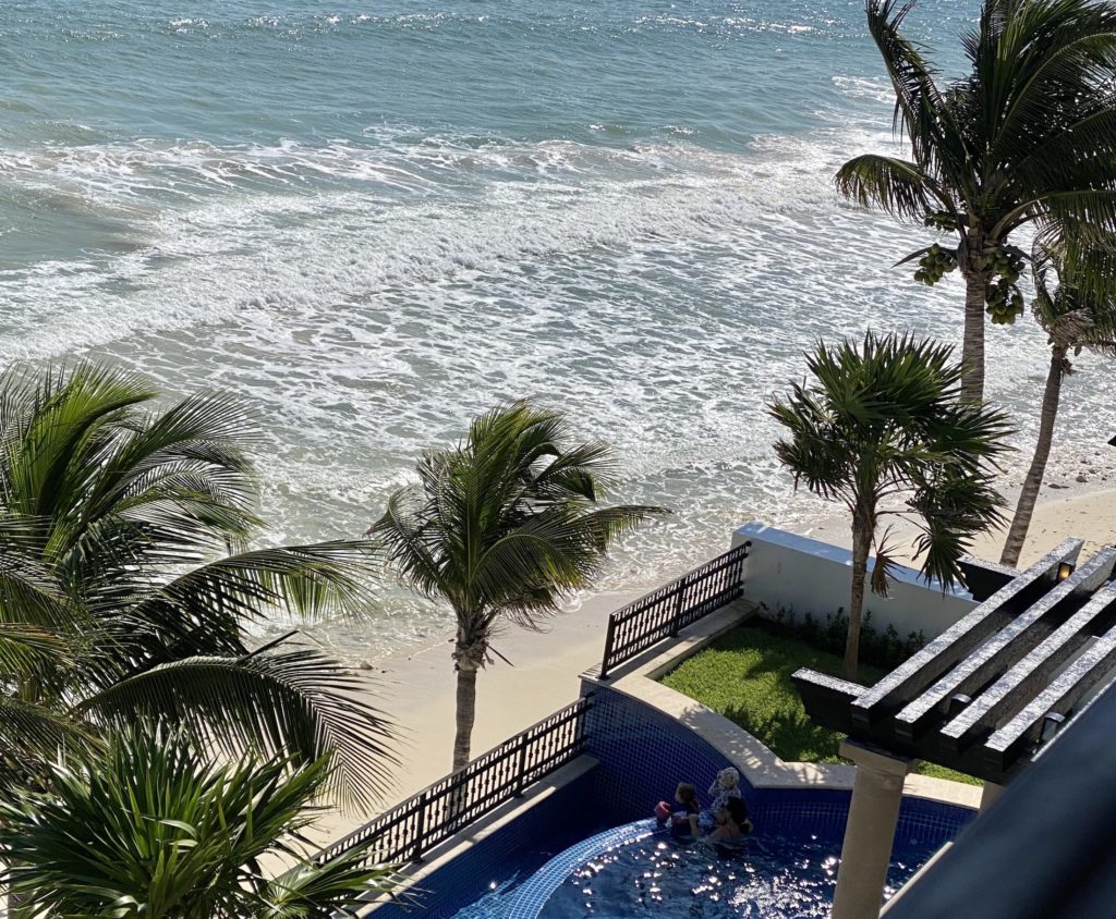 View of the beach and Caribbean Sea from my room at the Royal Uno all Inclusive resort in Cancun.