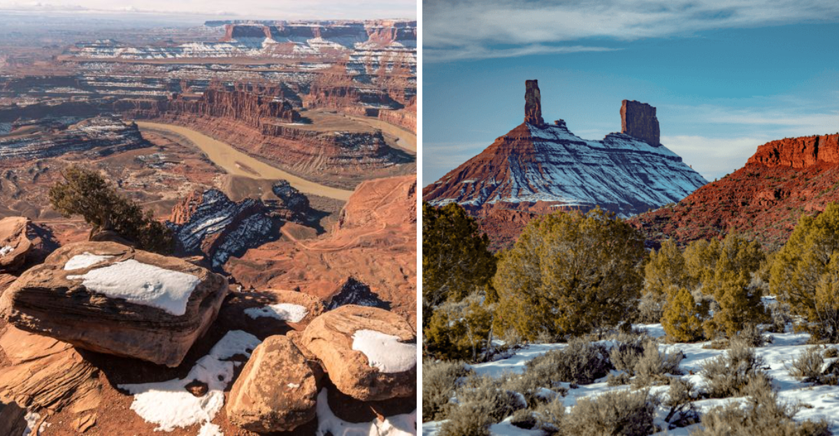 Utah’s desert transforms into a magical wonderland when winter arrives, painting red rock formations with delicate frost and creating views you won’t find anywhere else.
