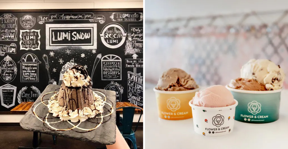 Have you ever tasted ice cream that changes color as you lick it? At Cosmic Ice Cream Co. in Austin, eating dessert becomes an interstellar journey. Their signature galaxy cones feature color-changing ice cream infused with natural fruit extracts that react to your body temperature.