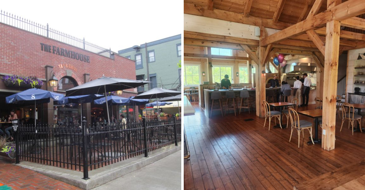 The farmhouse setting reinforces the restaurant’s commitment to authentic, farm-fresh cuisine.
