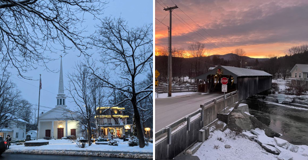 Vermont in winter feels like a film set, where snow settles softly on steeples and village greens glow with white lights. You can wander historic streets, peek into artisan shops, and watch smoke curl from chimneys as horse bells jingle in the distance. Each town on this list offers a distinct mood, from mountain drama to museum quiet, all wrapped in New England warmth. Keep reading to find your perfect holiday movie backdrop across the Green Mountain State.
